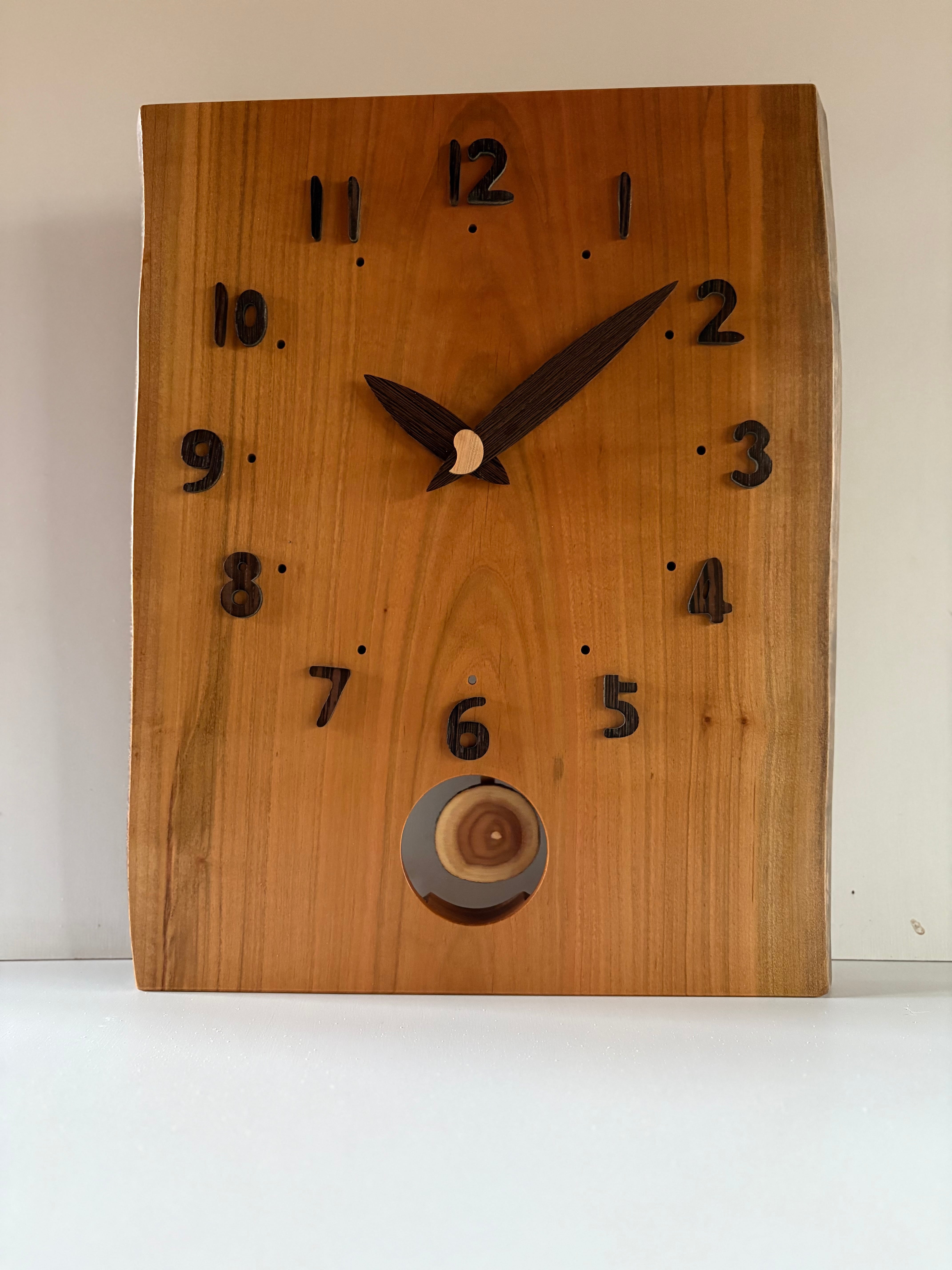 天然木の桜を耳付きのまま振り子時計にしてみました。