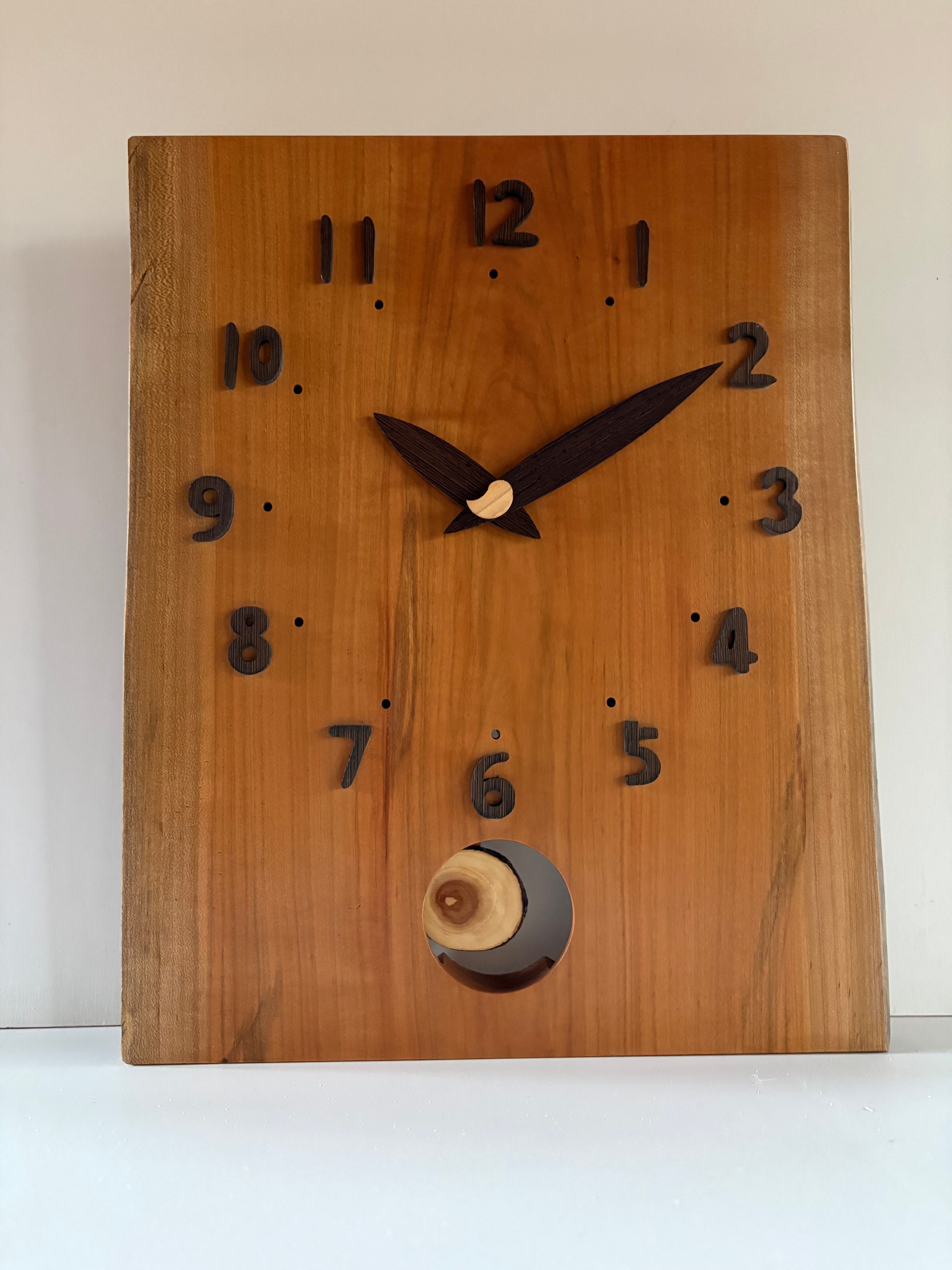 こちらは、中でも特に華やかな桜を耳付きのまま振り子時計に仕上げた製品です。日本独自の美しい桜の木を使用し、シンプルでありながらも目を惹く存在感を放つデザインとなっています。