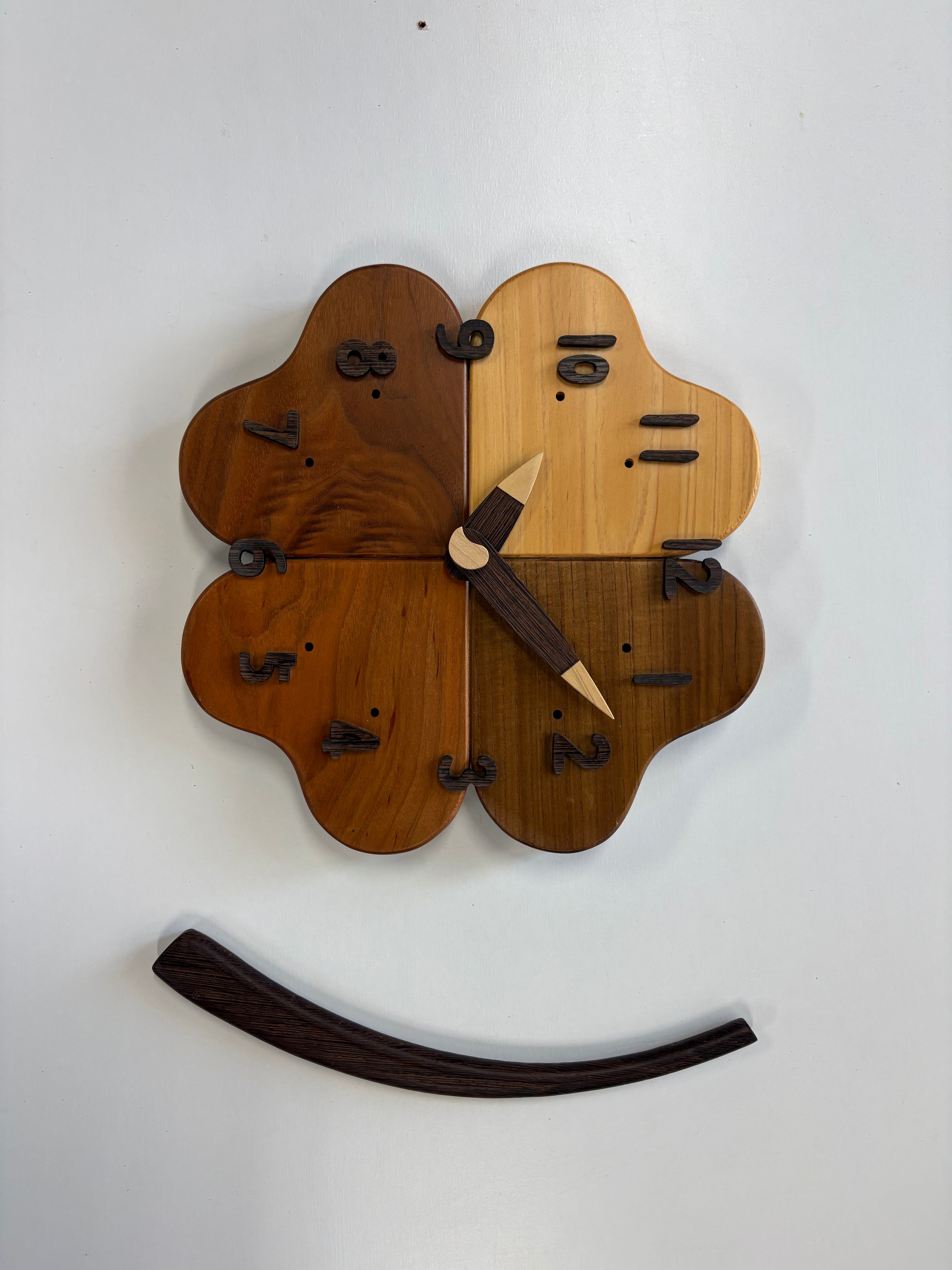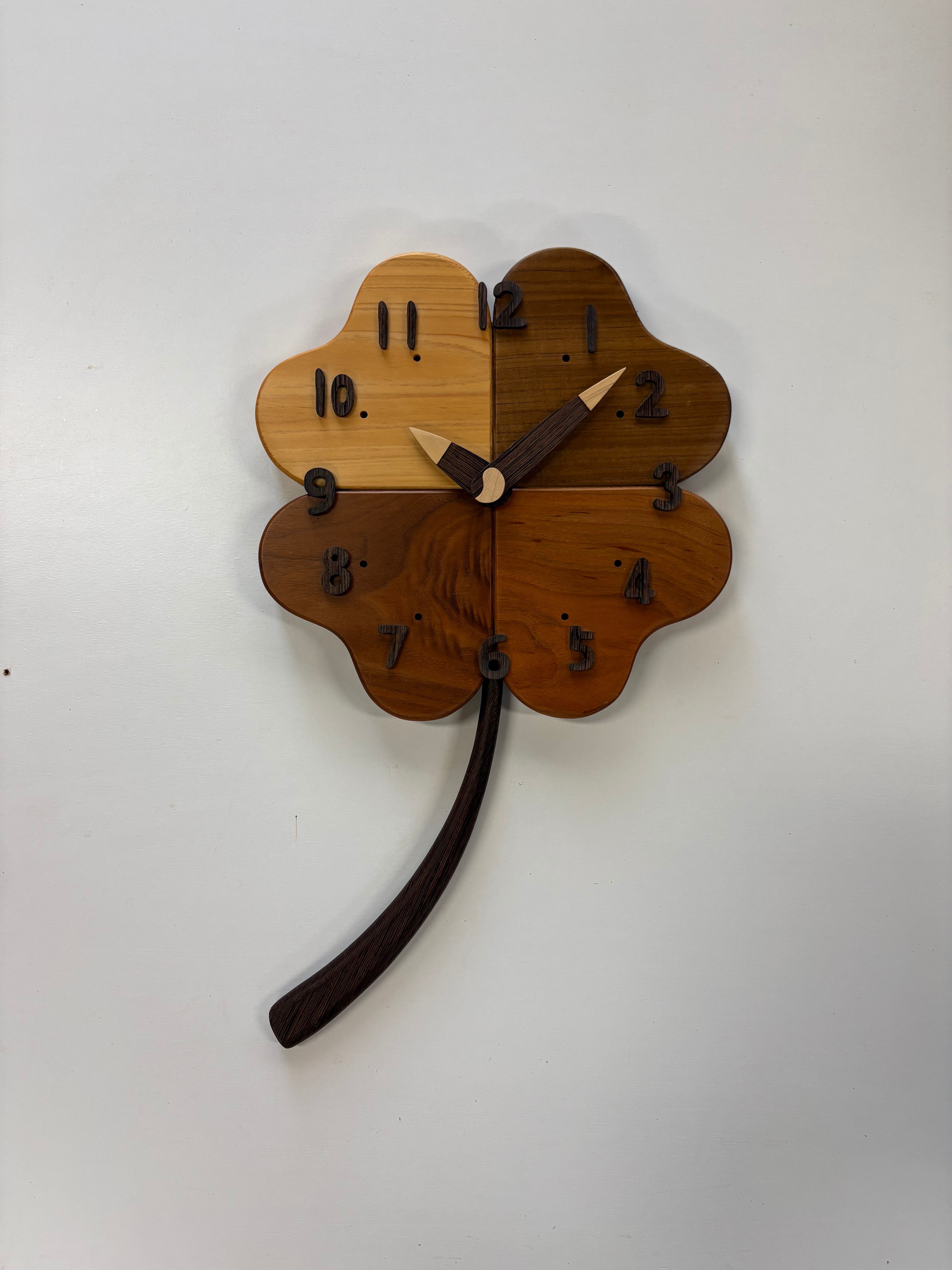 四つ葉のクローバーの掛け時計(数字あり)。四つ葉のクローバーは幸運の象徴とされ、この掛け時計で毎日あなたの運気を上昇させましょう。